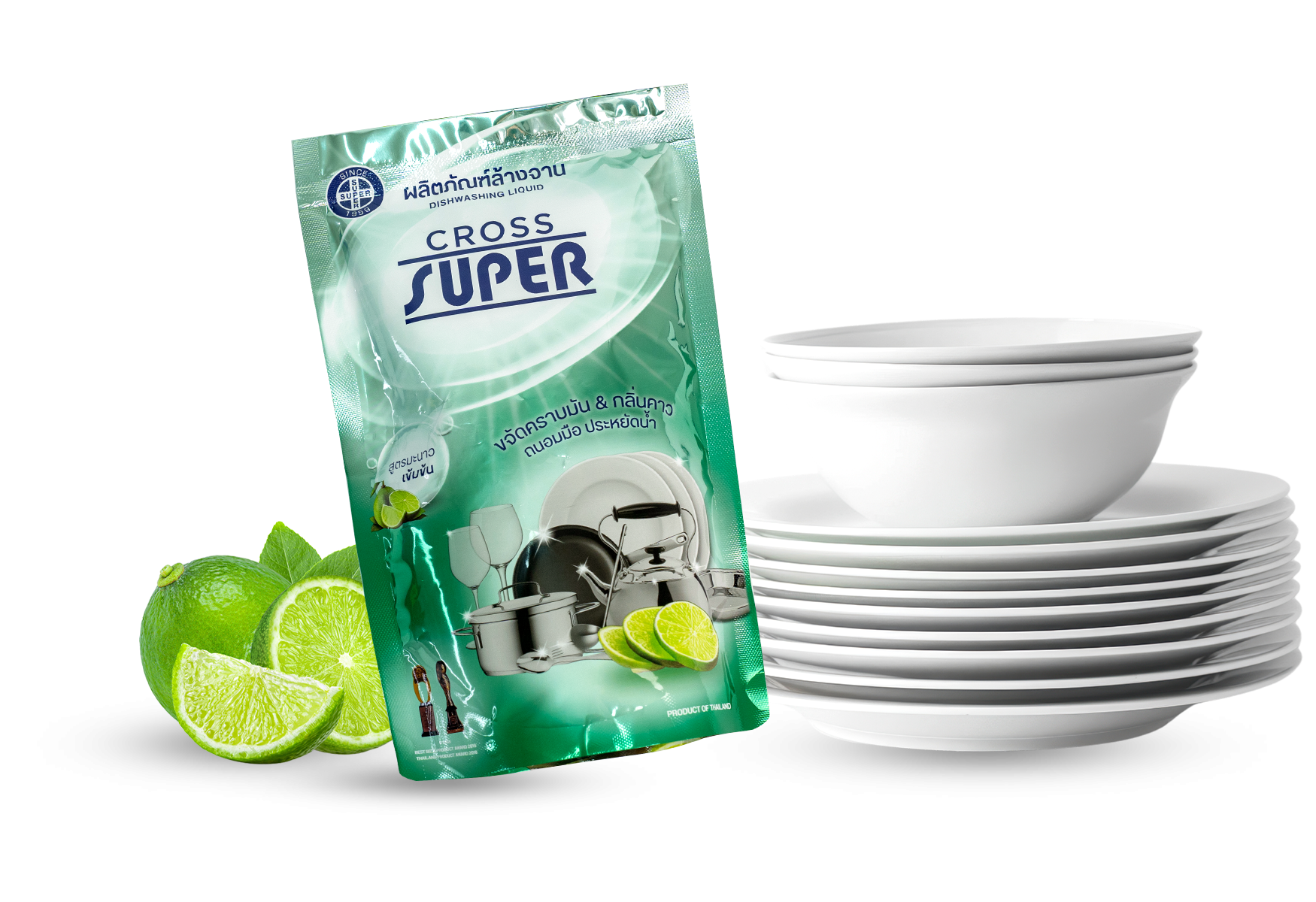 ผลิตภัณฑ์ล้างจานครอสซุปเปอร์ช่วยขจัดคราบมันให้ความสะอาดกับเครื่องครัวทุกชนิด จาน, ชาม, กะทะ ภาชนะประเภทพลาสติกที่ยากต่อการล้างคราบมัน เพียงใช้ผลิตภัณฑ์ล้างจานครอสซุปเปอร์สูตรเข้มข้นไม่กี่หยด สามารถล้างภาชนะได้มากมาย และง่ายดาย ปลอดภัยไร้กลิ่นคาว หมดคราบมัน